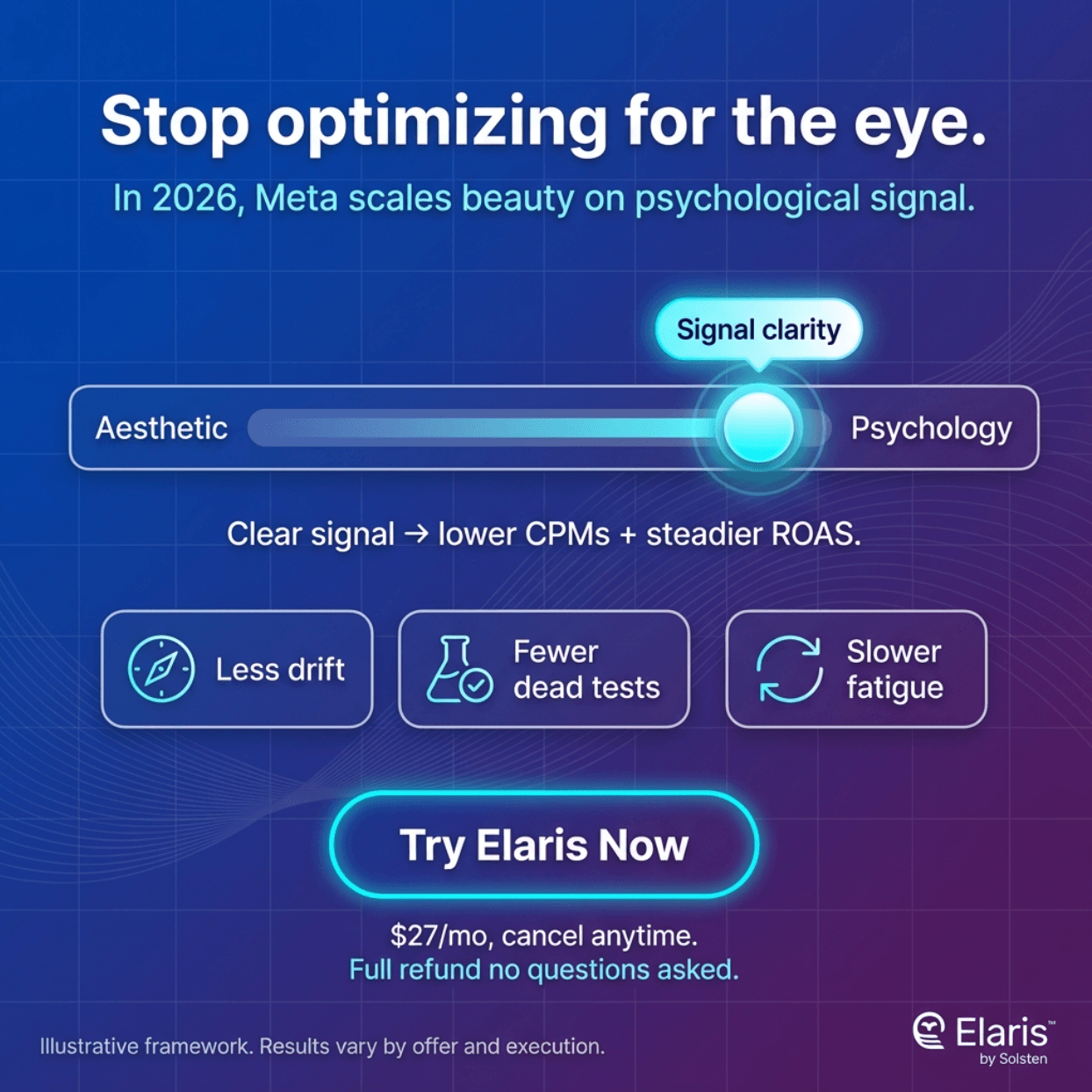 Feed winning creative back into Elaris to track shifts in psychological response and stay ahead of fatigue.