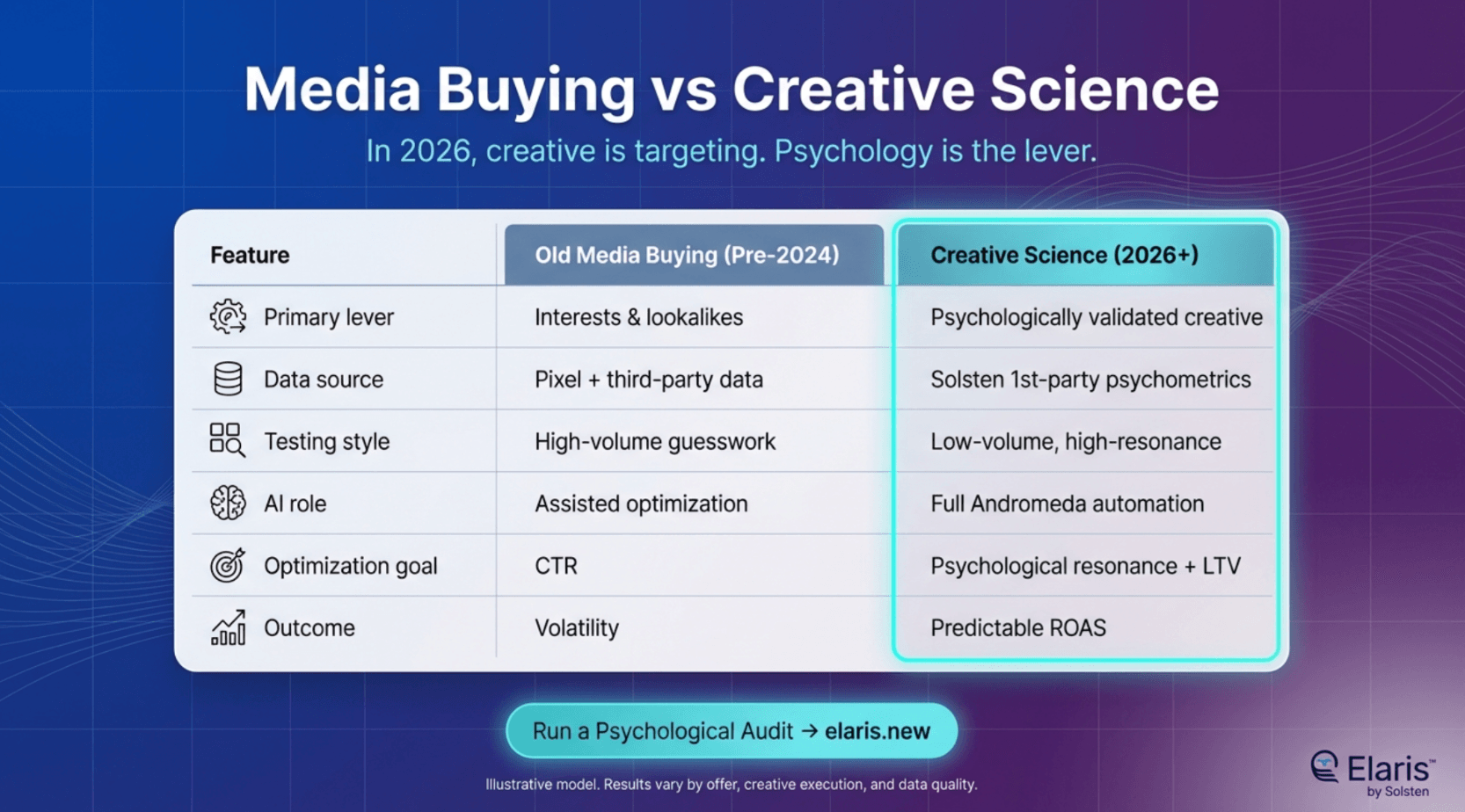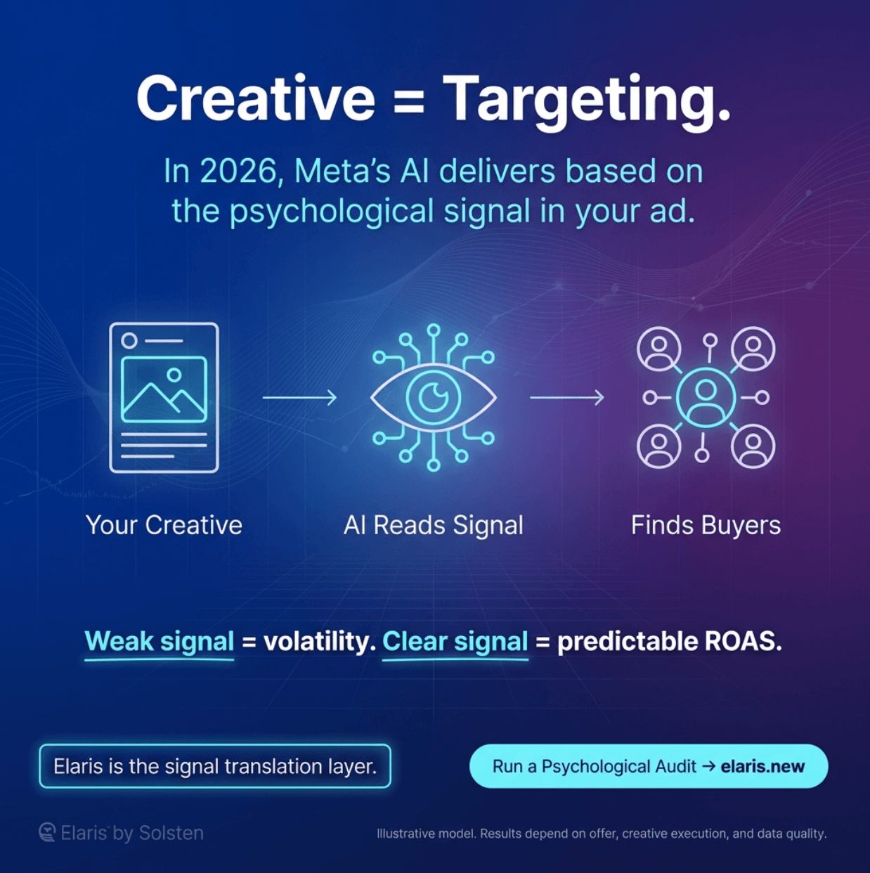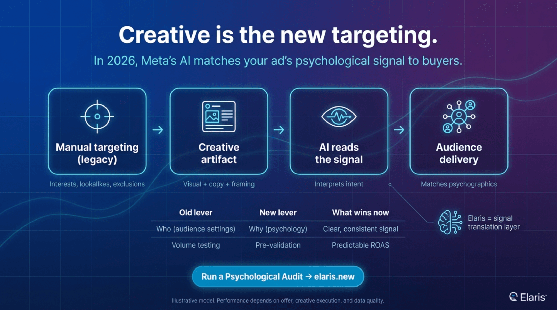 TL;DR: In 2026, manual audience targeting is no longer a competitive advantage. Under Meta’s Andromeda and Advantage+ automation, ad creative itself determines audience delivery. Brands and agencies that don’t design creative using human psychology are no longer targeting… they’re guessing.